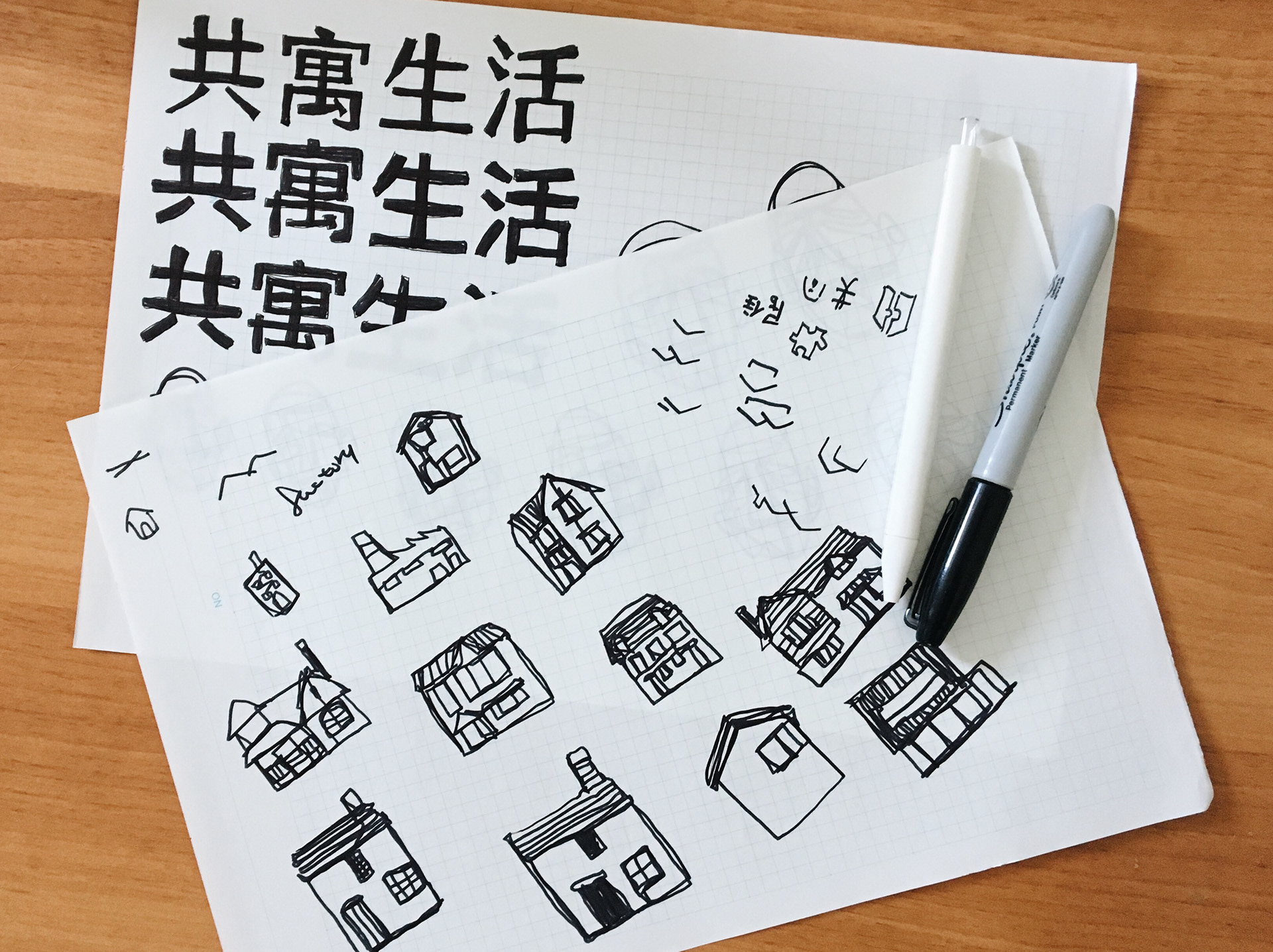 標誌構思上,為了讓共寓和家產生聯想,以手繪的方式畫出家的意象和標準字。